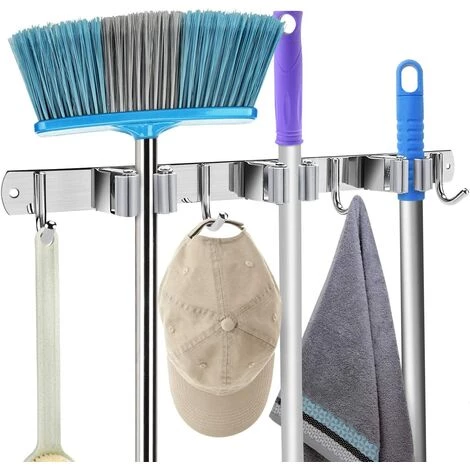 LTS FAFA Porte-balai Mural Avec 3 Emplacements Et 4 Crochets à Balai Pour Cuisine, Buanderie, Jardin, Garage