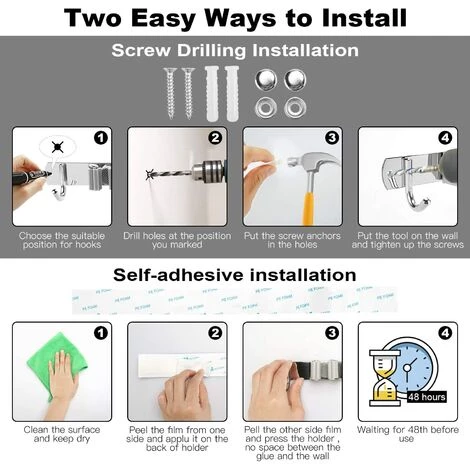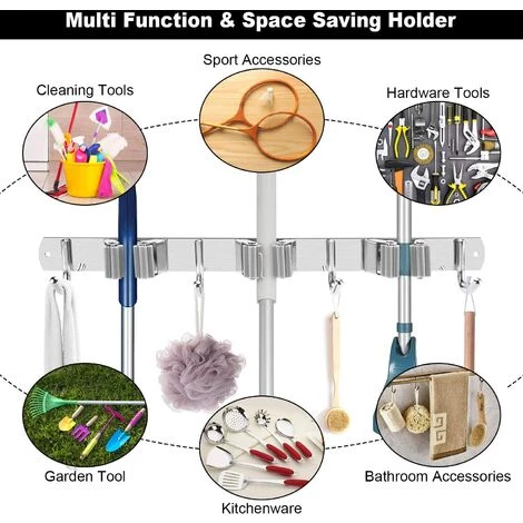 Organisateur de porte-balai mural et sangle 3sièges et 4L’espace de rangement crochetĂ© permet d’Ă©conomiser de l’espace pour vos balais, vadrouilles, chiffons et outils de jardinage. Parapluie. MatĂ©riau durable, le porte-balai mural est composĂ© deSUS 304FabriquĂ© en acier inoxydable, Ă©tanche et antirouille, la boucle triangulaire et l’engrenage en forme de pĂ©tale ajustent automatiquement la taille en fonction des diffĂ©rentes Ă©paisseurs de la poignĂ©e pour Ă©viter que les objets ne glissent2Il existe deux types de mĂ©thodes d’installation, le porte-balai peut ĂŞtre installĂ© avec des vis ou avec de l’adhĂ©sif, et vous pouvez choisir le schĂ©ma d’installation appropriĂ© en fonction de la surface d’installation : l’installation par adhĂ©sif convient aux murs lisses ; l’installation par forage convient Ă tous les murs. Les vis adhĂ©sives et de montage sont fournies. Large gamme d’applications, idĂ©ales pour une utilisation dans les cuisines, les salles de bains, les buanderies, les garages, les sous-sols, les escaliers, les dĂ©barras, les jardins et plus encore. Remarque, si vous utilisez de l’adhĂ©sif, assurez-vous que la surface est propre et sèche avant d’appliquer 48Accrochez les articles après les heures.