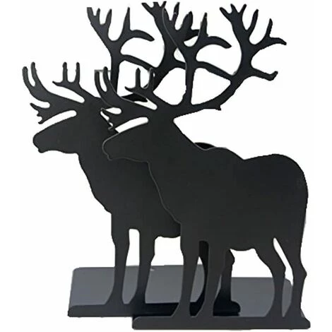 LUCKY-88 Support De Pince à Livre En Forme De Wapiti Et De Renne Support De Livre En Fer Métallique Support De Livre De Fin De Livre Contre étagère Support De Livre De Wapiti De Couleur [noir 1 Paire 2 Pièces]
