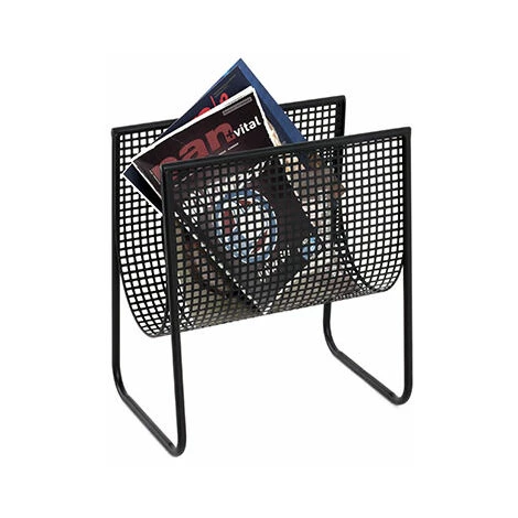 Ce porte-revues en métal laqué noir est l’accessoire qui vous faut pour le rangement dans votre salon. Conçu exclusivement pour contenir des magazines, ce modèle présente un réceptacle continu et dont les extrémités sont fixées sur deux supports horizontaux. Affichant un format incurvé sur la base, ce porte-revues révèle une structure aérée et des surfaces transparentes, traduites par des mailles en carreaux miniatures. Il se pose au sol via son piètement qui effleure au sol avec ses deux supports parallèles. Fabriqué avec du métal laqué, ce modèle exhibe une couleur noire qui met en avant la qualité de sa finition.