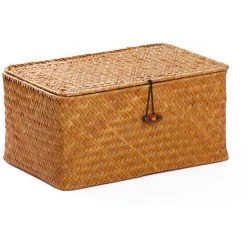 Panier tissé boîte de rangement rotin osier algues panier bureau articles divers conteneur tissé couverts tissu bijoux sac de rangement