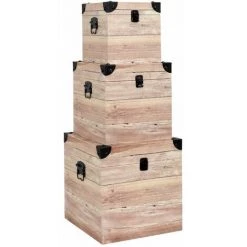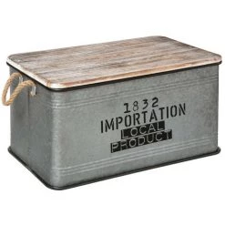 Atmosphera – Set De 3 Malles En Métal Zinc Et Bois Déco – Gris