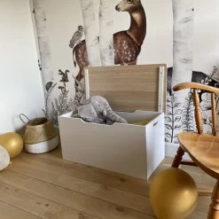 ALICE’S HOME Coffre à Jouet – Tobias – 80×40 Cm, Couvercle Rabattable, Poignées Latérales – Blanc