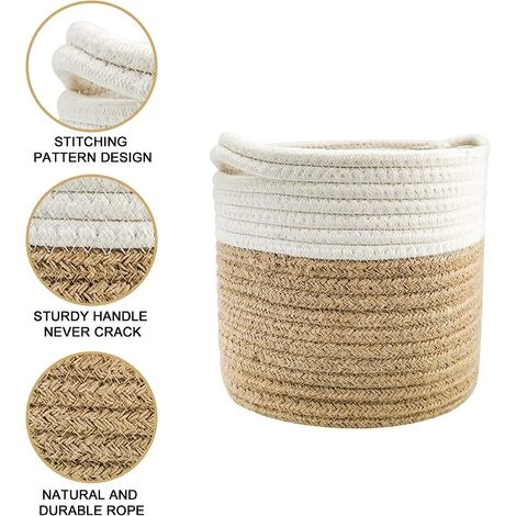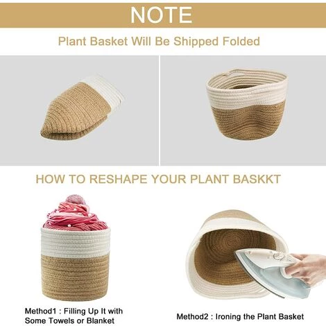 MEZHENG Corde De Coton Panier, 20×20cm Paniers De Tressé Pliable A Vec Poignée Panier De Rangement, Panier De Plantes Pour Pot De Fleurs Coton Stand Home Decor Blanc + Jute
