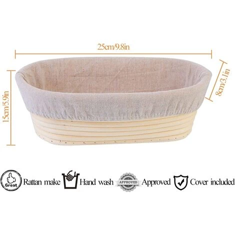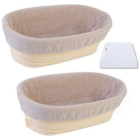 MEZHENG Pain Ovale En Rotin Paniers De Cuisson Panier De Fermentation Du Pain Corbeille à Pain Moule Pour Faire Lever Votre Pain Bread Raising Basket (Ellipse 2PCS 25cm)