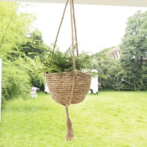 MEZHENG Paniers Jardinières Suspendues En Herbe De Mer Naturelle, Pots De Plantes D’intérieur Écologiques, Couvercle Jardinière, Naturel Et Original 23cm X 15cm, Lot De 2