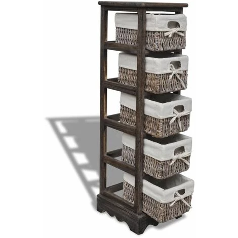 Ce magnifique support de rangement, à 5 couches, en bois de haute qualité, présente un design simple mais élégant. Il stocke non seulement vos affaires mais améliore également le décor de votre chambre. Livré avec cinq paniers en tissage, ce support en bois durable vous offre suffisamment d’espace pour ranger vos objets de valeur et, en même temps, apporte un style campagnard à votre pièce. Notre support en bois sera sûrement l’un de vos meubles préférés dans n’importe quelle pièce.