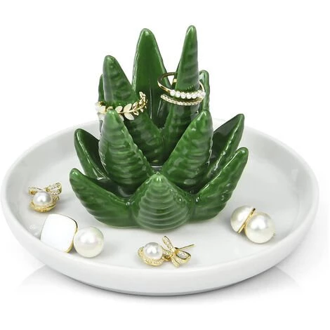 【Porte-bague en aloès fonctionnel】Laissez le plat à bagues dans la salle de bain ou le rebord de la fenêtre de la cuisine pour récupérer vos bagues lorsque vous prenez un bain ou cuisinier; placez-le sur la table de chevet ou la commode pour ranger vos bagues, colliers, bracelets, montres lorsque vous vous préparez à vous coucher. En outre, il peut servir de petit porte-clés pour le porche.