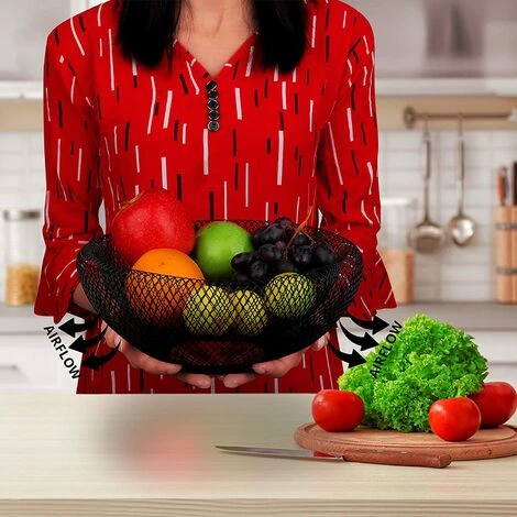 CORBEILLE À FRUITS EN MÉTAL : Cette corbeille à fruits doublée mesure 24 x 10 cm. Les petits interstices du grillage protègent vos fruits. Ce panier est fabriqué en métal de haute qualité, ce qui le rend solide et incassable. Le métal est recouvert d’un vernis en poudre non toxique et inodore. Il a été testé sur les aliments pour s’assurer qu’il est non toxique. Nous vous recommandons de le laver à la main avant de l’utiliser.