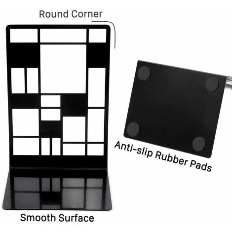 – Les serre-livres en métal sont à la fois fonctionnels et décoratifs. L’extrémité du livre en métal robuste adopte une conception évidée d’art abstrait, laSurface revêtue de poudre est lisse et antirouille. Convient pour le support d’étagère à livres pour la maison
