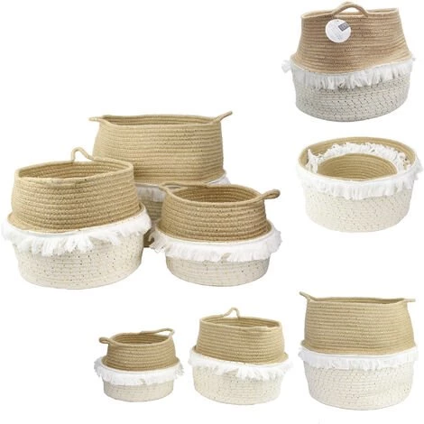 Rangez avec style et authenticité grâce à ce lot de 3 paniers agrémentés de franges. Vous allez adorer ce design d’inspiration ethnique ainsi que la qualité de sa finition. Maintenez les 3 paniers proches dans le séjour pour un effet ultra-décoratif ! Bonus : La partie supérieure du panier est rétractable Profitez d’un matériau de qualité ! Composition principale : textile – coton Bénéficez d’un format adapté et pratique ! Dimensions : 35×36.5×36.5cm Home Deco Factory est une marque qui offre tout pour votre habitat ! CHANGEONS DE DECOR ! Modernisez votre déco en apportant une note de peps dans le salon, une chambre, une salle d’attente…