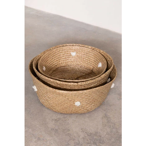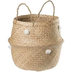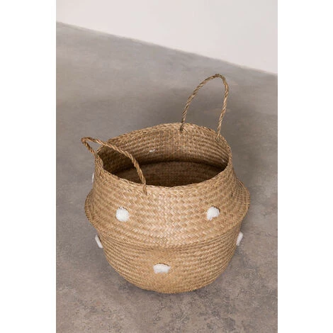 Chez SKLUM, nous vous proposons le Panier Kahs Pompy, une ressource polyvalente avec un design renouvelé et frappant avec des pompons comme détail décoratif.Tressé à la main en roseau 100% naturel, avec Kahs vous réaliserez la fusion parfaite entre design et fonctionnalité. Il est original, simple et apporte un air traditionnel et chaleureux aux espaces tels que salons, salles à manger, chambres ou terrasses, en étant totalement respectueux de l’environnement. Avec une grande capacité de rangement, c’est le panier à la mode à ne pas manquer. Il peut être utilisé à l’extérieur à condition de respecter les soins appropriés et de ne pas être exposé aux phénomènes atmosphériques. La conception et les mesures peuvent présenter des variations, des marques et des irrégularités dues à sa fabrication artisanale. Dimensions (Hauteur x Largeur x Profondeur): 43 – 53 – 50 cm x 35 – 40 – 33 cm x cm IMPORTANT : Le service standard porte-à-porte ne comprend pas la livraison et la collecte des marchandises au domicile du client, qui sont à la charge de ce dernier. Il est possible que le livreur aide volontairement à la livraison de la marchandise (ceci est totalement volontaire pour le livreur et la société de transport et ne relève pas de la responsabilité de Sklum).L’assemblage n’est pas non plus inclus.