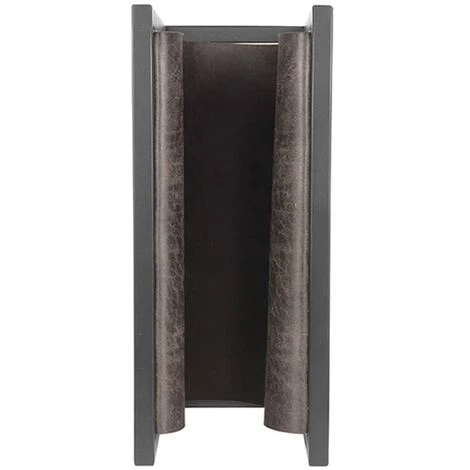 Ce porte-revues en métal noir présente un cadre rectangulaire. Le cuir double de couleur anthracite de haute qualité pour placer des magazines et des journaux repose entre le cadre. Le cuir double ajoute une résistance supplémentaire. Il garantit également que l’intérieur et l’extérieur ont une belle structure en cuir avec ses nuances de couleurs froides et ses contrastes subtils. La combinaison des matériaux confère à ce porte-revues un look robuste, industriel et rétro, qui convient à tout intérieur. Vous pouvez placer ce support de rangement à côté d’une armoire, d’un fauteuil ou d’autres objets, ce qui en fait un ajustement parfait.