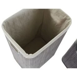 BRICOMARTEAU Panier à Linge DKD Home Decor Gris Beige Polyester Coton MDF Bambou (40 X 30 X 60 Cm)