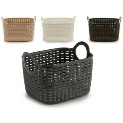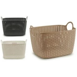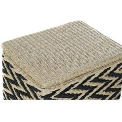 BRICOMARTEAU Panier à Linge DKD Home Decor Naturel Noir Polyester Colonial Fibre (43 X 32 X 50,5 Cm)