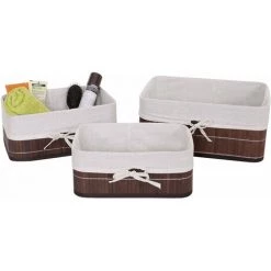 DéCOSHOP26 Panier De Stockage Rangement Accessoires Salle De Bain Maquillage En Bamboo – Noir