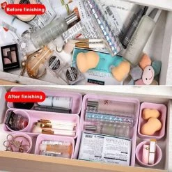 DIYOZZY SystèMe D’Organisateur De Tiroir, 8 Paniers En Feutre Pour Les CosméTiques, Rangement Pour Meuble-Lavabo Lavable, Panier En Feutre Pliable Pour Ranger La Papeterie Rose