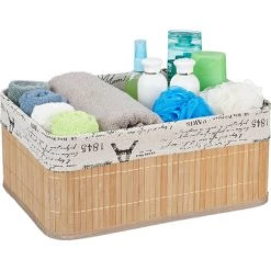 Avecce panier de rangement pliable vous mettez de l’ordre chez vous. Mettez laboîte dans la salle de bain, le salon ou comme organiseur dans l’armoire àvêtements. le petit panier décoratif s’insère presque dans chaque intérieur. Laboîte de rangement est idéale pour petits objets et accessoires tesl quechaussettes, télécommande ou maquillage. Ceci vous épargne à l’avenir de devoirchercher vos affaires. Le revêtement en tissu de la boîte en bambou est décoréavec des motifs imprimés français.