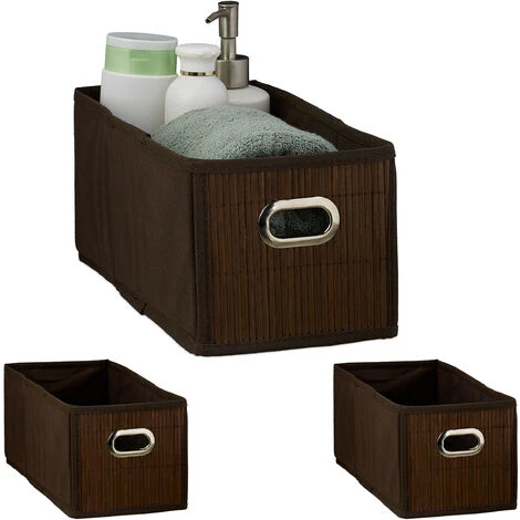 Lot de 3 boĂ®tes d’organisation pliables en toile etbambou