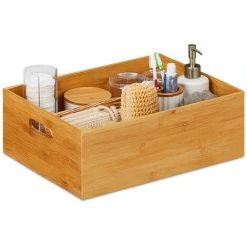 Avec cette boîtemultifonctionnelle, vous disposez d’un outil pratique pour le stockage, lerangement et le transport de diverses choses. Selon la taille choisie, la boîteen bambou est parfaitement adaptée pour ranger vos ustensiles dans la salle debain, comme boîte à épices dans la cuisine, caisse de rangement dans le salonet le bureau ou pour ranger les jouets dans la chambre d’enfant. Avec sa veinurenaturelle, la boîte en bois robuste met des accents décoratifs dans n’importequelle pièce.