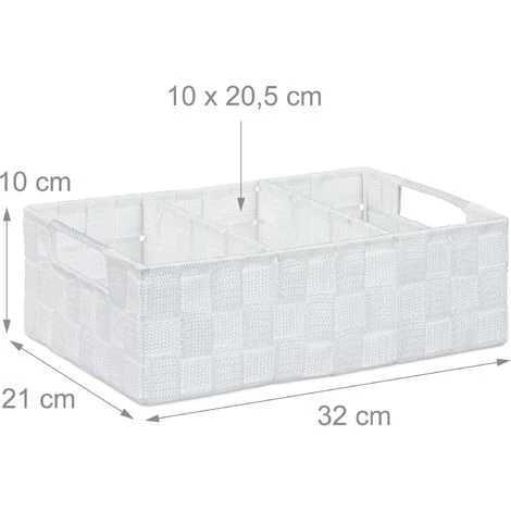 Quand le chaos règne dans la salle de bain, la petite corbeille crée de l’ordre. En outre la boîte d’organisation n’est pas seulement adaptée pour la salle de bain. La caisse de rangement avec 3 compartiments garde les objets du quotidien de manière visible à leur place dans toute la maison. La boîte de rangement avec poignées décore la chambre à coucher comme boîte à chaussettes ou est utilisée dans le salon pour le rangement des câbles ou du matériel à bricoler. Utilisez aussi la boîte comme petite corbeille d’urgence pour les articles d’hygiène à un mariage.
