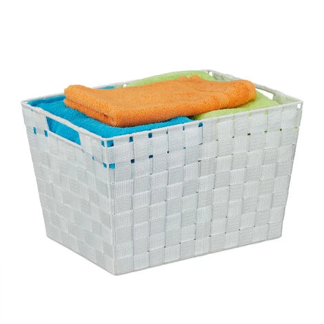 Lorsque le rangement de salle de bain ou le rebord de la baignoire sont complètement remplis, cette corbeille à remplir crée de l’ordre dans la salle de bain. En outre la boîte d’organisation n’est pas seulement adapté pour la salle de bain. La caisse de rangement avec poignées garde les objets du quotidien de manière visible à leur place dans toute la maison. La boîte de rangement décore la chambre à coucher comme boîte à chaussettes ou est utilisée dans le salon pour le rangement des câbles ou du matériel à bricoler. Utilisez aussi la boîte comme petite corbeille d’urgence pour les articles d’hygiène à un mariage.
