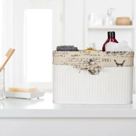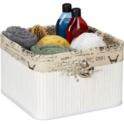 Rangez et organisez votre intérieur avec style et méthode grâce à cette boîte de rangement en bambou. Déposez vos petits objets du quotidien – produits cosmétiques, chaussettes, accessoires de couture ou outils de bricolage dans ce panier et mettez de l’ordre dans vos armoires, étagères, commodes etc. Le design élégant et vintage de la panière s’allie à la conception en bambou solide et fond en MDF renforcé pour faire de cette corbeille un atout déco incontournable.