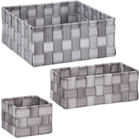 Ce lot de 4 corbeilles de rangement, de diffĂ©rentes tailles, est parfait pour mettre de l’ordre dans votre maison. Utilisez ces quatre boĂ®tes pour ranger les cosmĂ©tiques dans la salle de bain, les chaussettes et les sous-vĂŞtements dans l’armoire ou les petits objets qui traĂ®nent dans le salon ou l’entrĂ©e : mettez de l’ordre tout en dĂ©corant. Vous pouvez aussi employer les organiseurs dans des tiroirs pour amĂ©liorer votre rangement. Lorsqu’ils ne sont pas utilisĂ©s, ils peuvent ĂŞtre empilĂ©s les uns dans les autres pour gagner de la place.