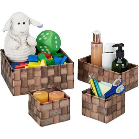 Ce lot de 4 corbeilles de rangement, de différentes tailles, est parfait pour mettre de l’ordre dans votre maison. Utilisez ces quatre boîtes pour ranger les cosmétiques dans la salle de bain, les chaussettes et les sous-vêtements dans l’armoire ou les petits objets qui traînent dans le salon ou l’entrée : mettez de l’ordre tout en décorant. Vous pouvez aussi employer les organiseurs dans des tiroirs pour améliorer votre rangement. Lorsqu’ils ne sont pas utilisés, ils peuvent être empilés les uns dans les autres pour gagner de la place.