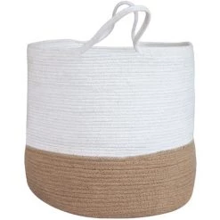 Panier rond en jute naturelle et blanc – Boubou –