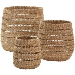 Avec le motif ajouré de leurs fibres de posidonie tressées avec savoir-faire, nos paniers Komodo (lot de 3) vous plairont par leur légèreté et leur grâce. Vous aimerez également leurs proportions toutes en rondeurs Ø 40 x H 45 cm / Ø 32 cm x H 35 cm / Ø 19 cm x H 28 cm.