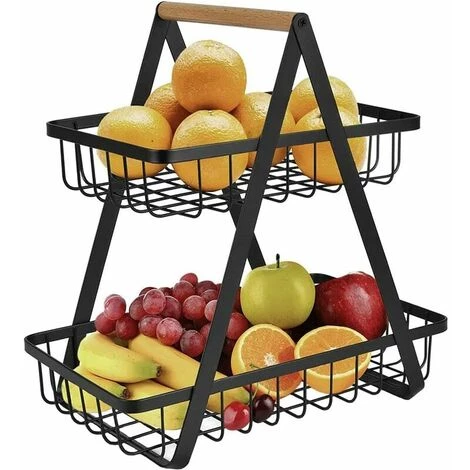 CONCEPTION À 2 COUCHES: Le panier est très approprié pour ranger les fruits et légumes, garde votre espace organisé et ne prend pas trop de place sur le plan de travail. La corbeille de fruits ouverte permet à l’air de circuler librement, laisse respirer les fruits et légumes et les garde au frais.