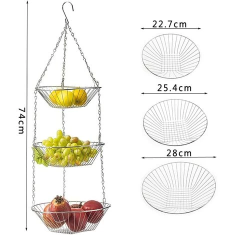 Design attrayant Panier fruits 3 niveaux, le panier fruits suspendu comprend 3 niveaux pour un tri et une organisation faciles.Si vous avez besoin de trouver quelque chose, c’est une bonne solution pour le rangement de la cuisine. .