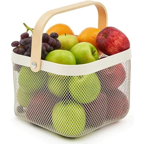 PARFAIT POUR STOCKAGE Panier de rangement en Maille Mtallique avec Poigne en Bois est un excellent moyen d’organiser ou de dcorer votre maison, votre bureau, votre appartement, vos lofts ou tout autre espace de vie. Utilisez-le pour arranger des pices, ajouter votre dcor, ou pour stocker des objets personnels quotidiens.