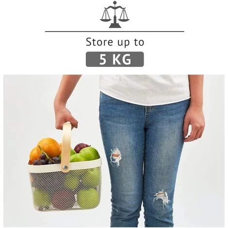 ROBUSTE ET DURABLE Le panier de stockage est construits en fil mtallique avec une finition en blanc enduit de poudre pour rsister la rouille.