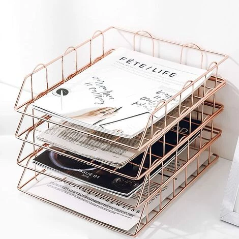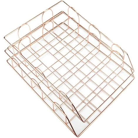 TINOR 2 Pcs Corbeille à Courrier Empilable En Métal, Bac à Courrier Organisateur De Bureau Pour Classement Stockage Document Fichier, Couleur Or Rose