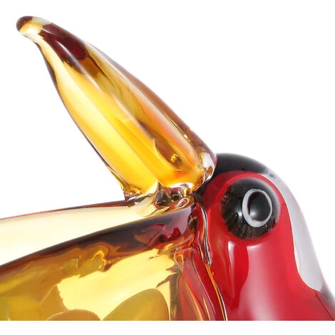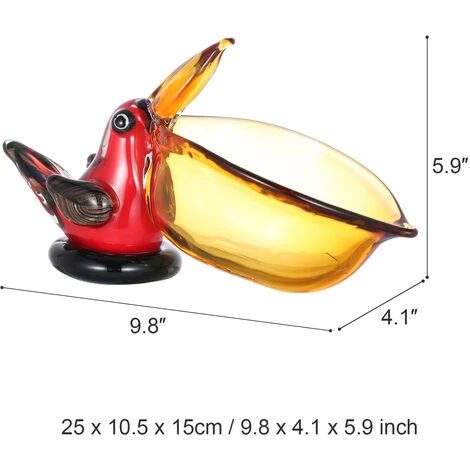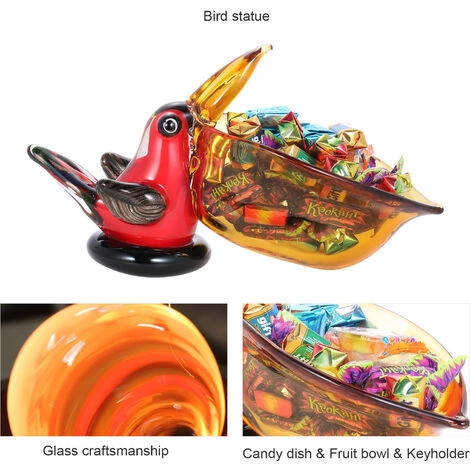 La statue de verre est un oiseau mignon avec une bouche ouverte exagérée comme si vous souhaitiez que vous y mettiez quelque chose. Inspiré du monde animal, le large bec de l’oiseau est intelligemment conçu dans un récipient qui peut être utilisé pour contenir des objets. Le bol à oiseaux est en verre, qui est épais et stable et ne tombe pas facilement. Son corps d’oiseau rouge et sa bouche orange contrastent fortement et les plumes dorées regorgent de détails. La sculpture est cuite à la main à une température élevée de plus de 1 000 degrés par un artisan grâce à un processus de soufflage. Comme il est fait à la main, il peut y avoir de légères différences dans le produit. Ce bol en forme de bec d’oiseau peut être utilisé non seulement comme plateau à bonbons, bol à fruits ou comme rangement pour clés, stylos, cosmétiques, petits accessoires, etc., mais aussi comme décoration dans le salon, la cuisine et le bureau. Il sera accrocheur lorsqu’il sera utilisé lors de fêtes de fin d’année. Cette sculpture pratiquement fonctionnelle est un cadeau appréciable pour maman, ou elle est spéciale comme cadeau de vacances ou de mariage.