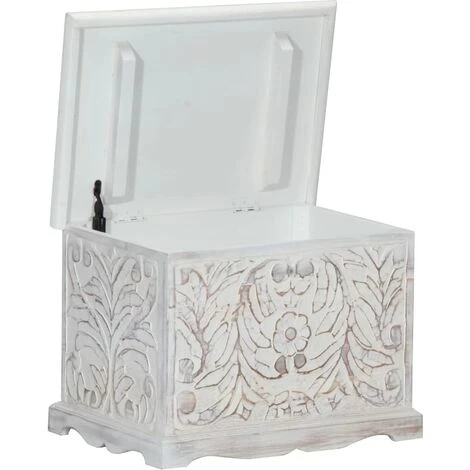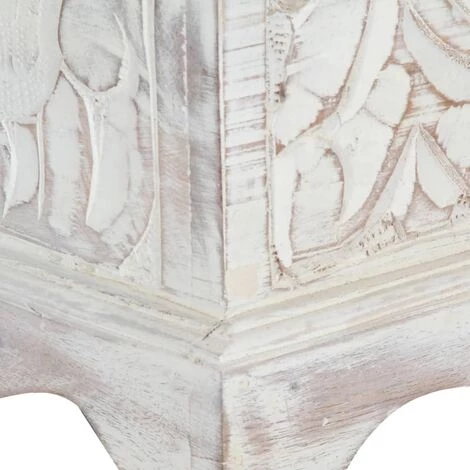 Cette boîte pour couvertures est faite de bois d’acacia solide et a reçu une finition blanche pour lui donner un beau look et une couleur vive. Le savoir-faire et les grains de bois gracieux rendent chaque meuble distinctif et légèrement différent l’un de l’autre. De plus, le savoir-faire parfait garantit que chaque étape du processus est réalisée avec le plus grand soin, que ce soit le polissage, la peinture ou le laquage. En outre, les motifs élégants sculptés à la main sur la surface avant de la boîte ajoutent à la beauté du meuble. Cette boîte de décoration contient 1 armoire offrant suffisamment d’espace pour ranger vos vêtements, vos livres et divers articles bien rangés.