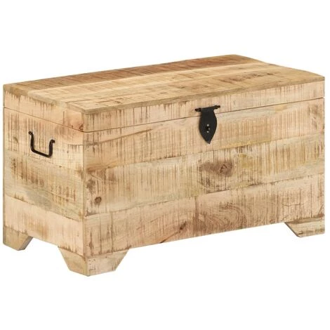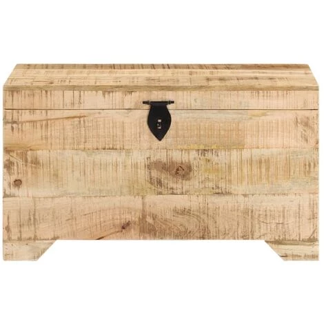 Cette boîte de rangement est fabriquée en bois de manguier brut qui est solide, stable et élégant. L’artisanat ajoute au style rétro spectaculaire. Elle offre également un grand espace de rangement pour les vêtements, les magazines, les livres, les jouets, les outils et autres accessoires. Le coffre a un loquet sur le devant et deux poignées sur le côté. Avec un dessus stable, cette boîte en bois peut également être utilisée comme table basse, bout de canapé, table d’appoint, banc, etc. Les beaux grains de bois rendent chaque meuble unique et légèrement différent l’un de l’autre.