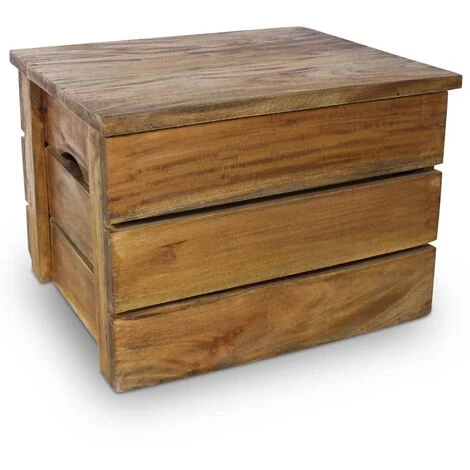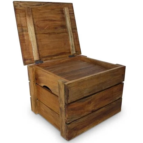 Comme les boîtes de rangement sont en bois de récupération, elles ont les caractéristiques de différents bois comme l’acajou, le teck, le manguier, l’acacia, etc. Vous pouvez trouver des cavités laissées par des clous, des vis ou des boulons avec d’autres imperfections, qui sous-tendent l’authenticité du matériau. Ces imperfections révèlent une histoire riche et ne sont jamais faites intentionnellement. L’origine du bois provient d’arbres tombés naturellement, de bateaux en bois, de maisons en bois, etc. Chaque pièce de ce meuble est unique et légèrement différente de la suivante. Les signes d’usure et l’artisanat de ces caisses entièrement faites à la main donnent à chaque pièce un look unique et s’ajoutent à son style vintage spectaculaire.
