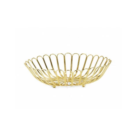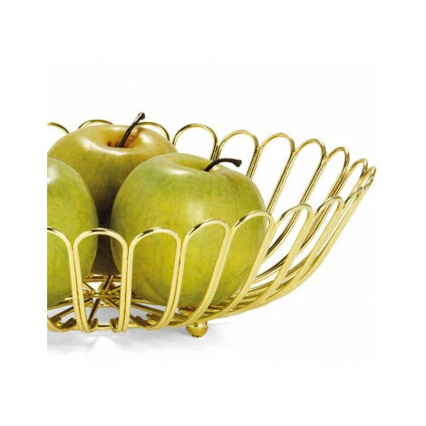 Belle corbeille à fruits en métal doré, idéale en centre de table décoratif.