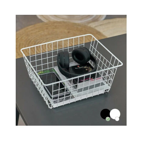 Panier organisateur en métal noir qui convient aussi bien pour la cuisine, que le bureau ou la salle de bain.