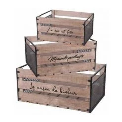Soyez le premier à laisser votre avis sur “WADIGA Set De 3 Caisses En Bois Et Métal Avec Messages – Bois” Annuler la réponse