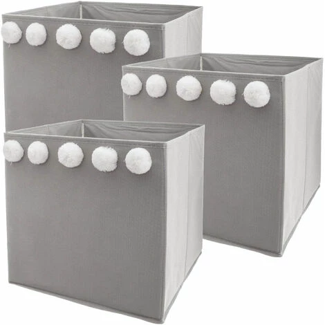 Ensemble de boîtes de rangement Wellhome.Boîtes qui permettent de stocker de petits objets de manière décorative.Ce sont des pratiques car elles peuvent sauver toutes sortes d’objets pour la plus petite de la maison.En gris, décoré par l’avant avec 5 pompons.Fabriqué en polypropylène.Dimensions 29 x 29 x 29cm.
