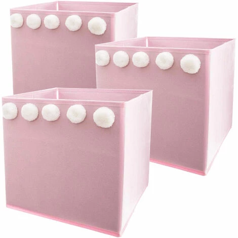 Ensemble de boîtes de rangement Wellhome.Boîtes qui permettent de stocker de petits objets de manière décorative.Ce sont des pratiques car elles peuvent sauver toutes sortes d’objets pour la plus petite de la maison.En rose, décoré par l’avant avec 5 pompons.Fabriqué en polypropylène.Dimensions 29 x 29 x 29cm.
