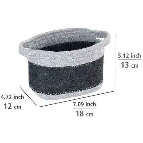 - Visuel rustique décoratif : La petite corbeille en feutre de 2,5 litres est fabriquée à base de polyester et de coton. La structure tissée à 80 % en coton gris clair et à 20 % en polyester forme deux poignées pratiques et une magnifique bordure qui longe le feutre gris foncé à 100 % en polyester. Le visuel de l’accessoire exprime ainsi une forme de robustesse et de sérénité – c’est le compagnon idéal pour une ambiance confortable à la maison.