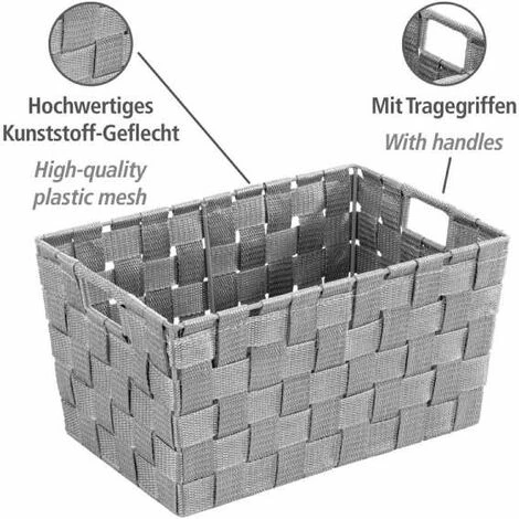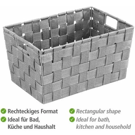 Avec cet élégant panier gris, vous apportez une optique nouvelle dans tout le ménage et placez des notes de bon goût. Dans la salle de bain, le panier en matière plastique tressée haut de gamme (PP) apporte design et ordre pour le rangement des serviettes d’invités ou des accessoires de salle de bain. Dans la chambre d’enfants, il peut servir à collecter de manière ordonnée les petites pièces de jouets, qui sont ainsi à tout moment à portée de main à l’endroit souhaité. De quoi motiver même les plus petits à faire de l’ordre volontairement. Même dans les armoires-penderies, la pratique boîte de rangement sert à ranger dans l’ordre linge et chaussettes ainsi que les ceintures, etc. Dans la cuisine, les ustensiles de cuisine y trouvent un emplacement esthétique et sont ainsi rangés de manière structurée. Veuillez noter que les informations de dimensions se rapportent aux points les plus larges sur la face supérieure du panier. En raison de la forme conique, les paniers de salle de bain sont un peu plus minces dans la partie inférieure.l: 30 cm x H: 15 cm x P: 20 cm