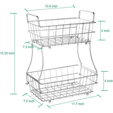 La conception à deux niveaux permet une utilisation efficace de l’espace. Libérer autant d’espace de comptoir, garder les choses organisées et accessibles. De plus, il est super attrayant et peut être démonté si vous n’avez besoin que d’un seul panier. Excellent ajout à votre cuisine ou salle de bain !