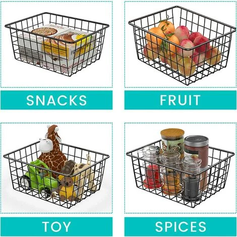 ZHUOXUAN Panier En Fil Métallique, 4 Pièces De Panier De Rangement En Fil Métallique Panier En Métal Durable Panier De Rangement Pour Salle De Stockage Des Aliments, Adapté Aux Armoires De Cuisine, Salles De Stockage Des Aliments, Salles De Bains, Plans De Travail